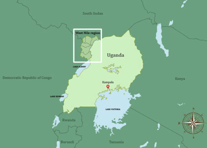 West-Nile region is located in the upper north-western part of Uganda. The region stretches from the northern shores of Lake Albert to the South-Sudanese border. It lies between the White Nile river and The Eastern Ituri border of the DRC and is geographically more related to north-eastern DRC than northern Uganda.